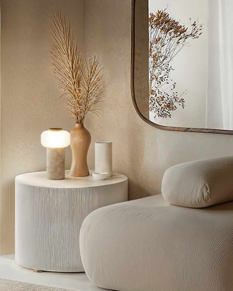Lámpara de mesa portátil fabricada en mármol travertino con iluminación LED
