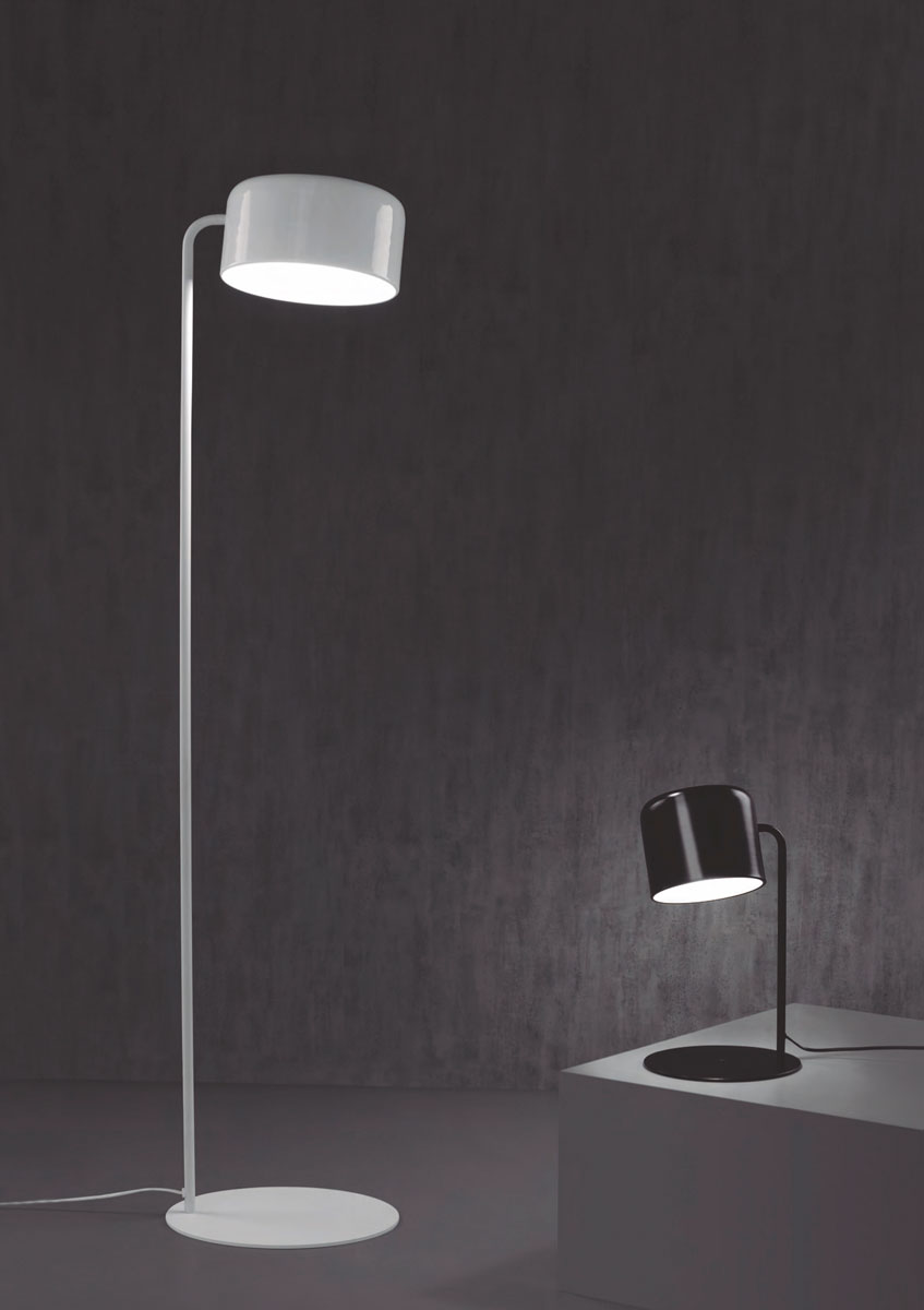 Lámpara de sobremesa con cuerpo metálico disponible en color blanco o negro