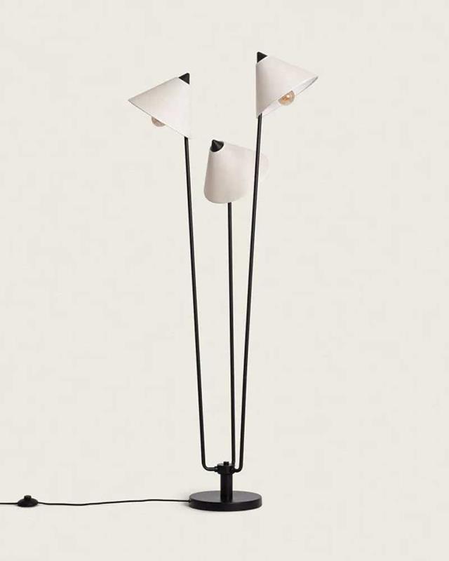 Lámpara de pie metálica con 3 tulipas a diferentes alturas
