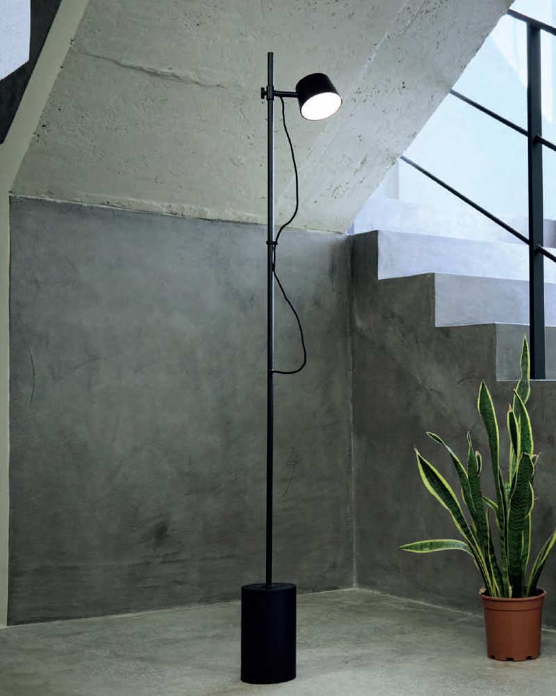 Lámpara de pie fabricada en metal color negro orientable y ajustable