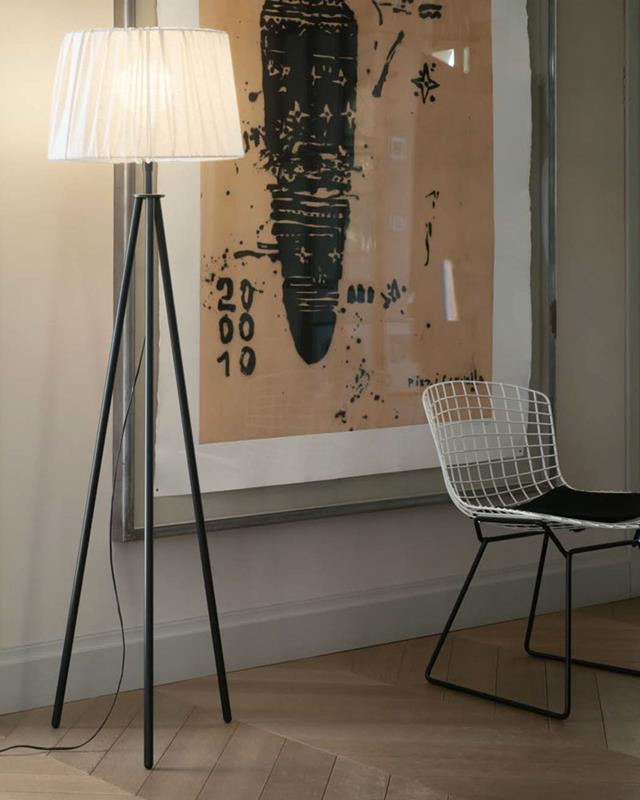 Lámpara de pie con estructura tipo trípode en color negro o blanco